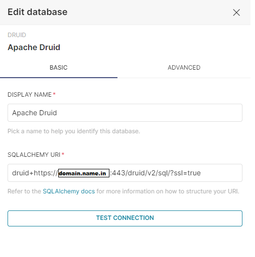 6. For Druid the SQLALCHEMY URI will be in the below format: