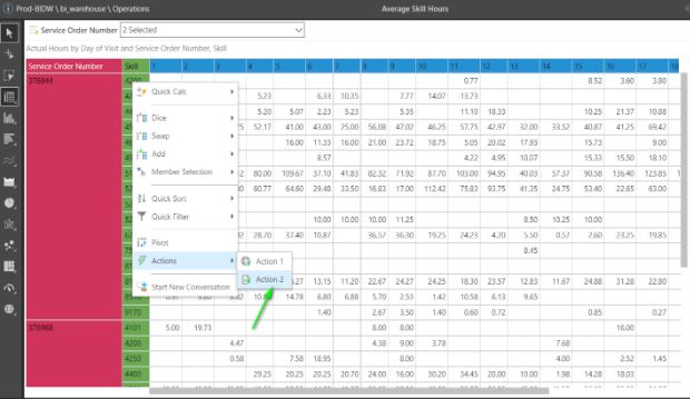 Discovery Actions: We use an action wizard to trigger an action whenever we click an icon like a member, cell, hierarchy, etc., on the report visualization. Now we can go through the steps in Discovery actions.