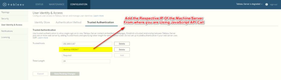 We need to register the respective web application server Host/IP Address by adding it to the Tableau Server.