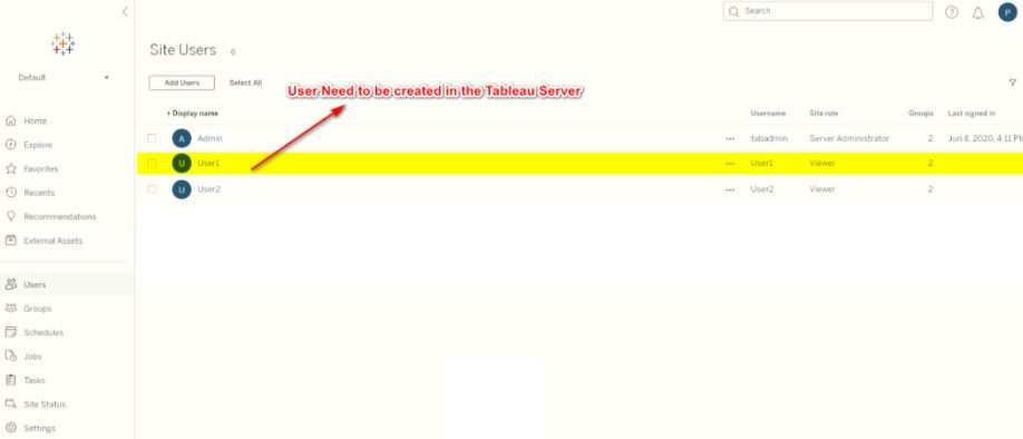 First we need to make sure the user is created and assigned to a respective site role in Tableau Server.